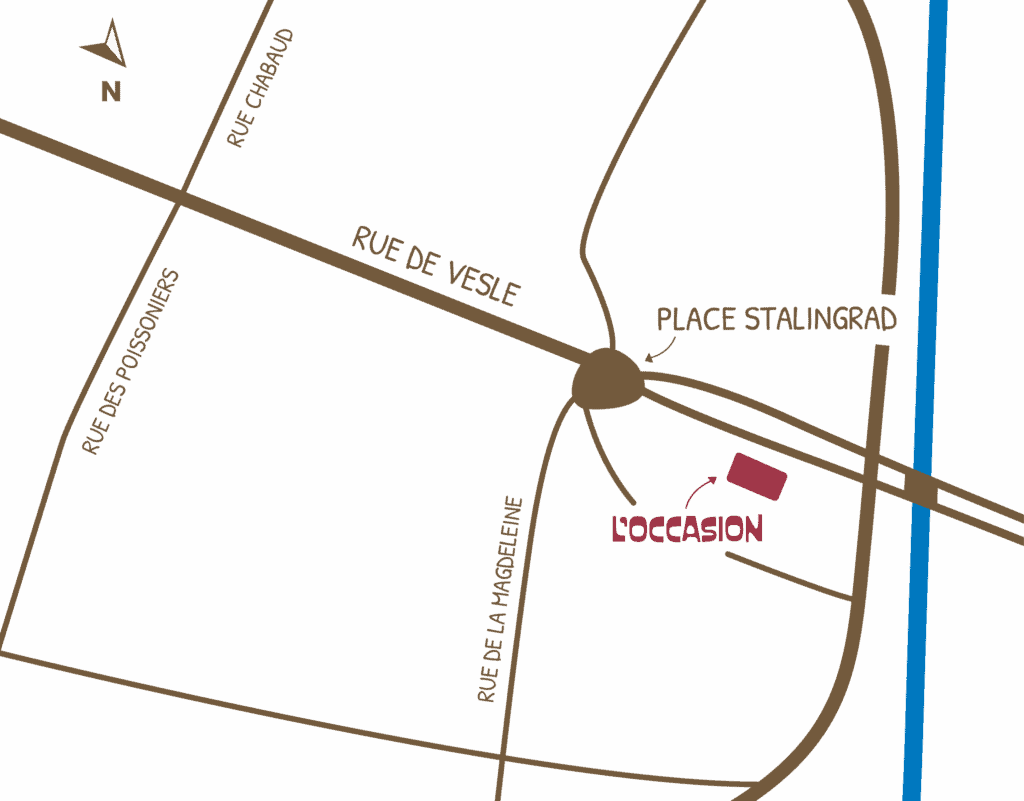 Located on Rue de Vesle in Reims, just a stone’s throw from the Comédie, L’Occasion is accessible by car, tram or on foot. For cyclists, there are several areas where you can park your bicycle.